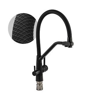 Смеситель д/кухни С-обр. гусак МАГНУС черный,с двойным выпуском воды, нерж.сталь304, арт 91117