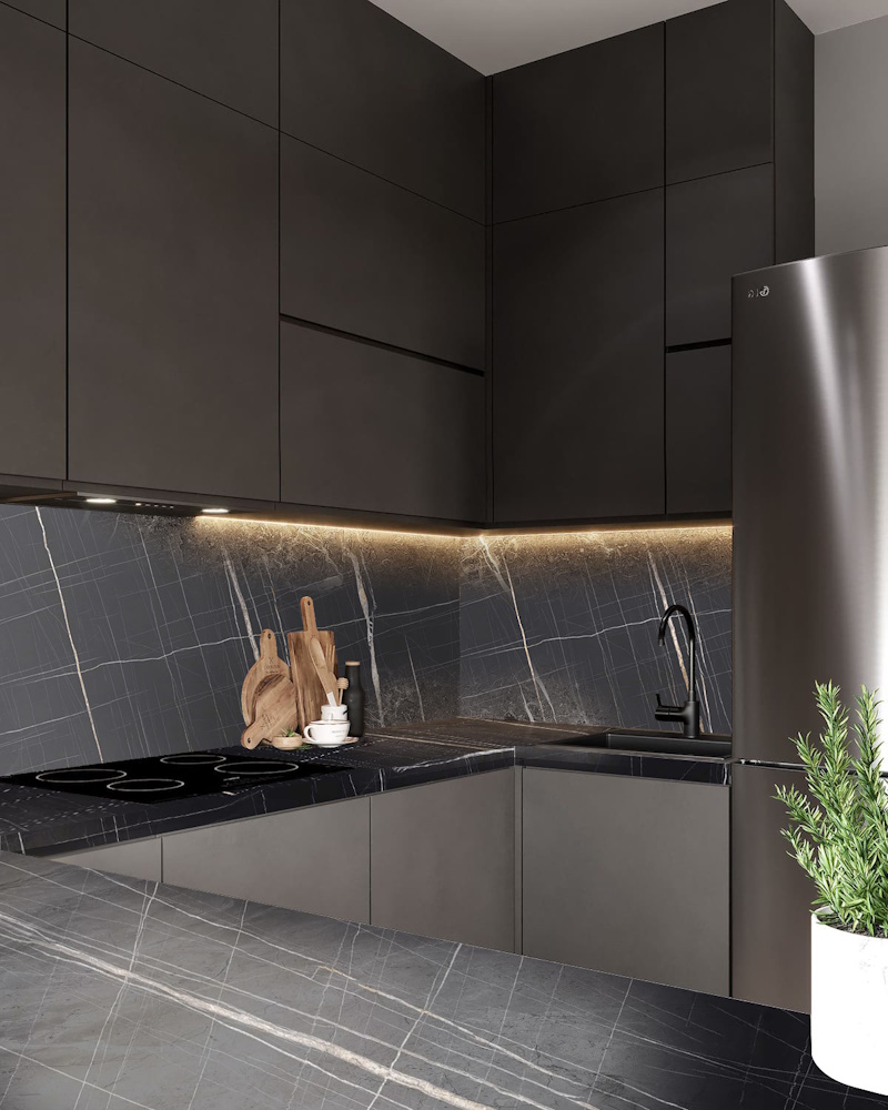 Стеновые панели уже давно заняли свою нишу в широком ассортименте комплектующих материалов для мебели. С их помощью можно замаскировать вентиляционные рукава, неудобные выступы, или сделать яркий акцент. Стеновые панели производятся на основе МДФ 4 и 6 мм, а также ДСП 10 мм класса эмиссии Е1. Для облицовки плит применяются бумажно-слоистые CPL и HPL пластики передовых европейских и российских компаний. МДФ является основным составляющим стеновых панелей. За счет ламинированного покрытия стеновые панели менее подвержены воздействию влаги и как следствие разбуханию, при соблюдении требований к монтажу и правилам эксплуатации. Ламинированная поверхность не позволяет накапливаться загрязнениям. Для ухода достаточно протирания влажной тряпочкой с использованием моющих средств без абразивных добавок. Не подвержены воздействию ультрафиолетовых лучей, проще говоря – не выгорают на солнце. В отличие от других способов оформления фартука или просто стены, установить стеновую панель можно самостоятельно.