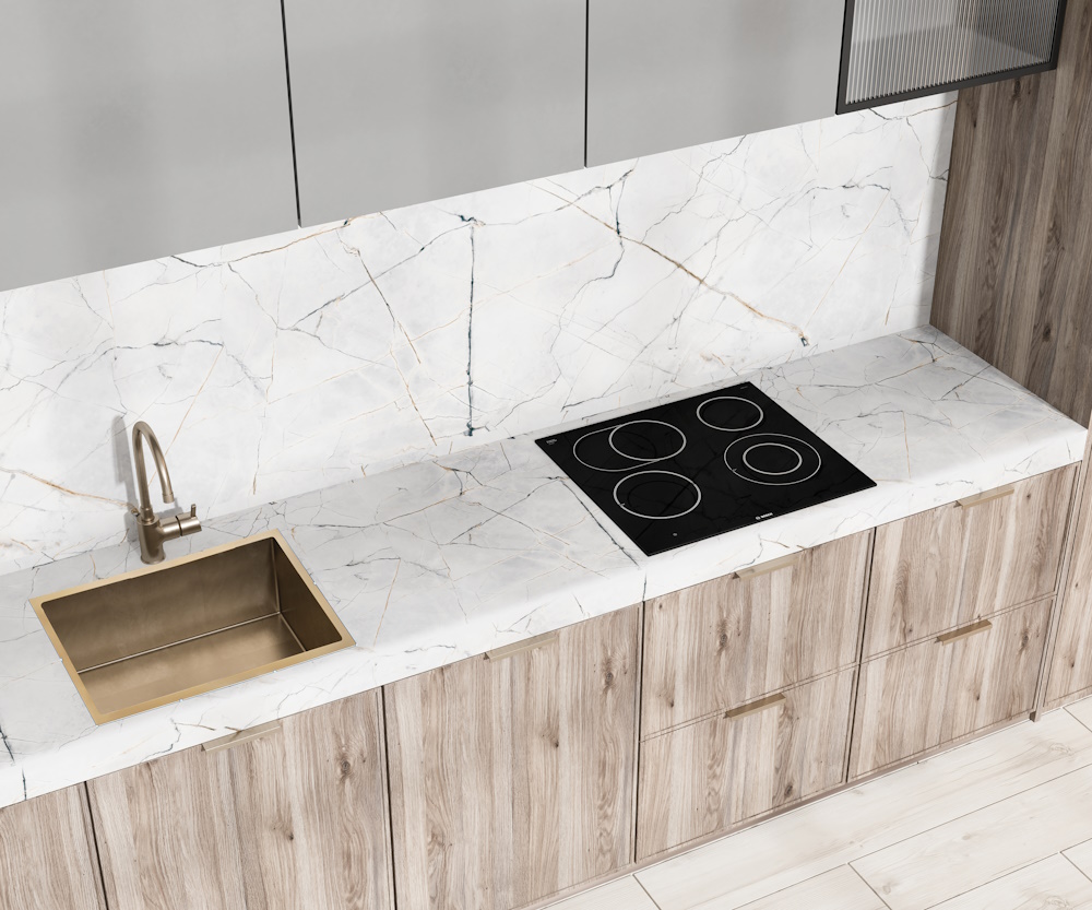 Стеновые панели уже давно заняли свою нишу в широком ассортименте комплектующих материалов для мебели. С их помощью можно замаскировать вентиляционные рукава, неудобные выступы, или сделать яркий акцент. Стеновые панели производятся на основе МДФ 4 и 6 мм, а также ДСП 10 мм класса эмиссии Е1. Для облицовки плит применяются бумажно-слоистые CPL и HPL пластики передовых европейских и российских компаний. МДФ является основным составляющим стеновых панелей. За счет ламинированного покрытия стеновые панели менее подвержены воздействию влаги и как следствие разбуханию, при соблюдении требований к монтажу и правилам эксплуатации. Ламинированная поверхность не позволяет накапливаться загрязнениям. Для ухода достаточно протирания влажной тряпочкой с использованием моющих средств без абразивных добавок. Не подвержены воздействию ультрафиолетовых лучей, проще говоря – не выгорают на солнце. В отличие от других способов оформления фартука или просто стены, установить стеновую панель можно самостоятельно.