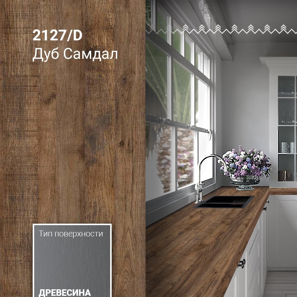 Столешница 3050x600x40 1U 2127 Дуб Самдал //2 обладает влагостойким слоем, который обеспечивает надежную защиту от разбухания столешницы при частом контакте с водой, благодаря качественной герметизации. Столешницы устойчивы к различным бытовым химиям, чернилам, пищевым кислотам и ультрафиолетовому излучению, что сохраняет их внешний вид и функциональность. Также они обладают высокой стойкостью к механическим повреждениям, таким как царапины и сколы и выдерживают высокие температуры без образования следов от горячей посуды.