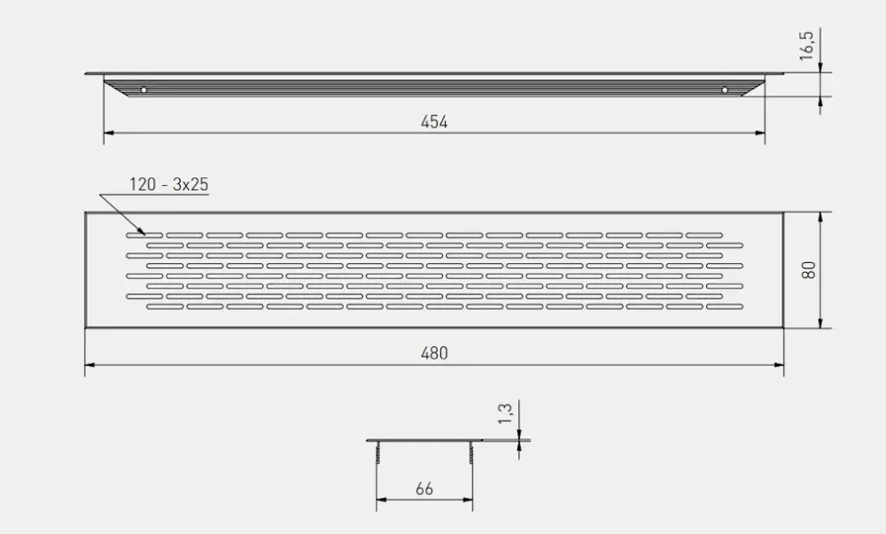 Размер монтажного отверстия составляет 454 x 66 мм, а площадь вентиляционного сечения — 90 см², что обеспечивает оптимальный воздушный поток. Изготовленная из высококачественного алюминия, решетка GTV отличается долговечностью и надежностью, что способствует ее долговечному использованию в различных условиях.